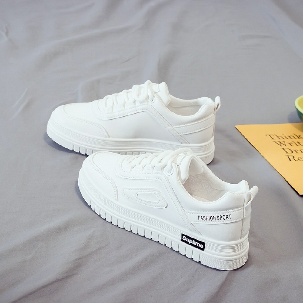 Basic White Shoes Women Spring New Student Flat Running Shoes Women's Lace-Up Platform Shoes