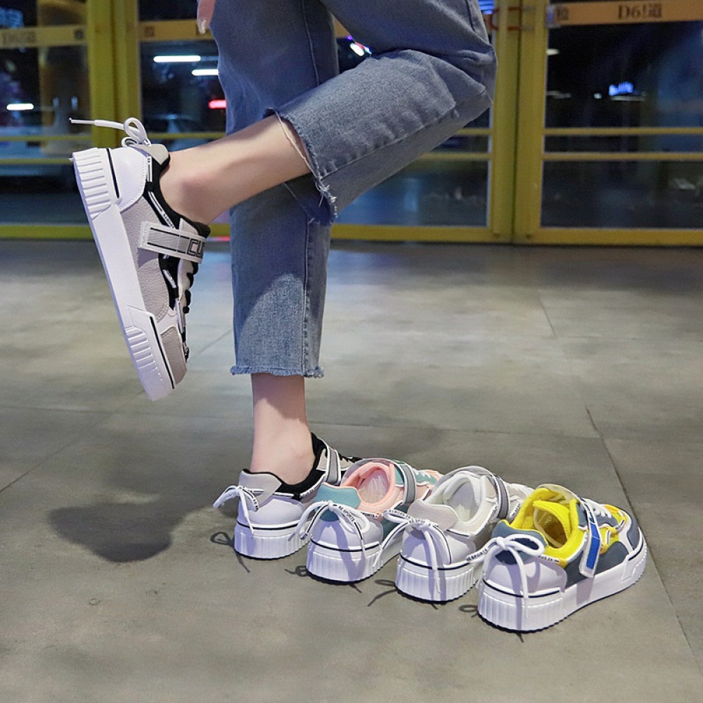 Basic White Shoes Women Spring New Student Flat Running Shoes Women's Lace-Up Platform Shoes