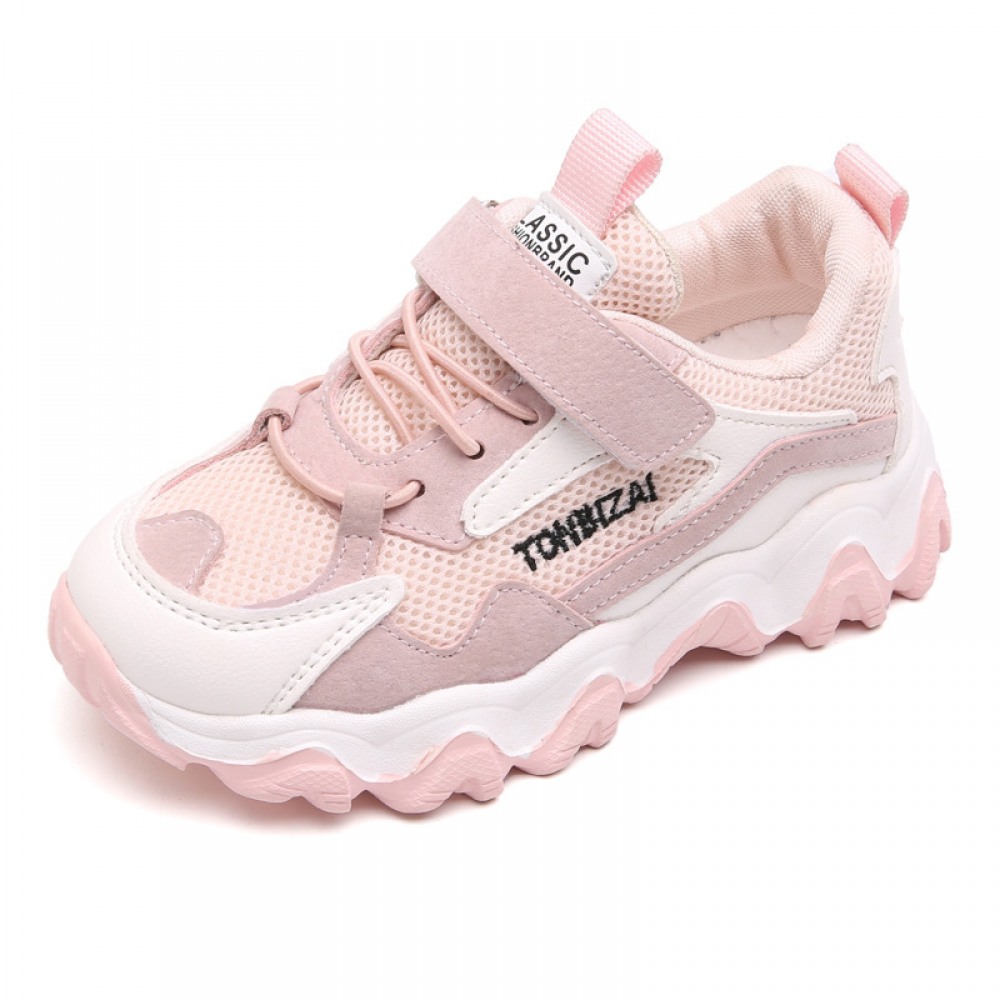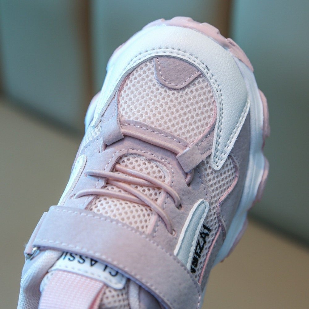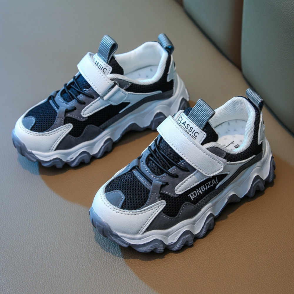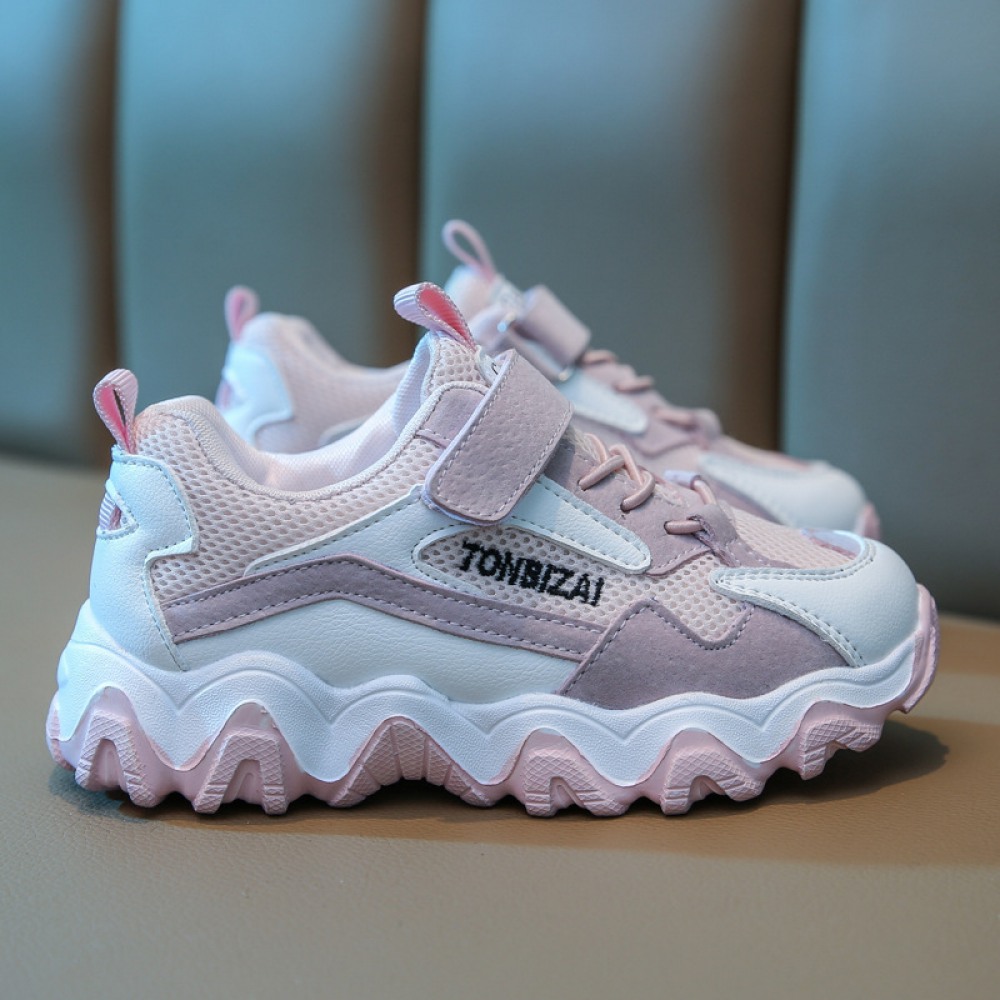Spring and Summer New Sports Children's Leather Wave Bottom Casual Shoes Mesh Breathable Shoes
