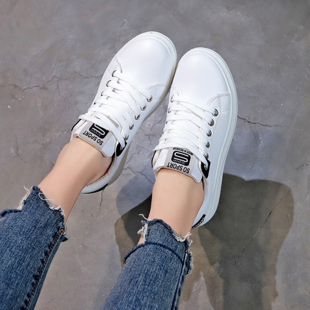 Spring New White Shoes Female Leather Student Shoes Female Running Flat Shoes Casual Shoes