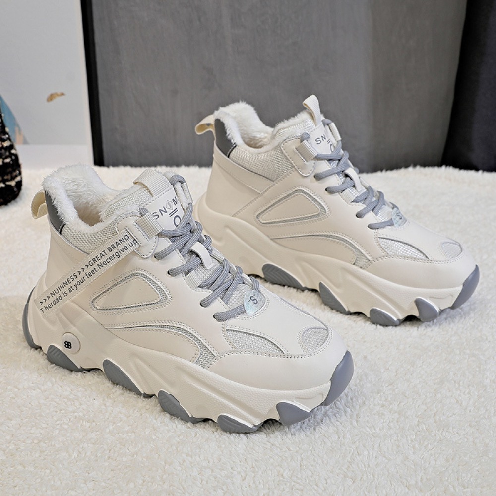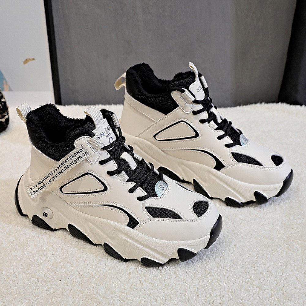 Casual Shoes Women's New High-Top Womens Shoes Plus Velvet Color Matching Warm and Thick Bottom Women
